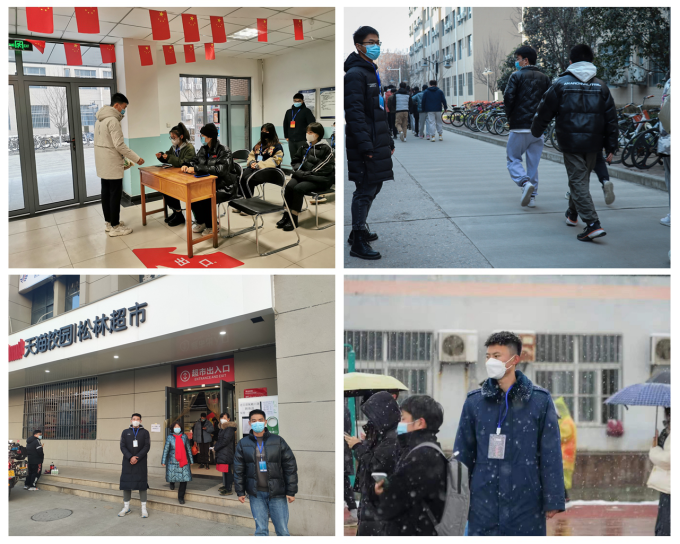 在宿舍楼内,志愿者们认真核对每一位同学的出入证、洗澡预约凭证,发放洗浴票,耐心解答同学们的问题和困惑;在食堂和超市门口,志愿者们认真执勤,时刻注意提醒就餐、购物人员佩戴好口罩、保持好距离,用心维持秩序,落实就餐、购物要求;在核酸检测过程中,志愿者们在公寓楼将同学们逐层带出整队,做完核酸检测后全员带回,秩序井然。3名退伍士兵志愿者积极参与核酸检测现场秩序维护和引导工作,坚持传承军队优良作风,保持“退伍不褪色”的军人本色,在新的“战场”上彰显人生价值。