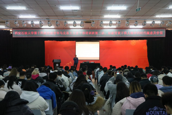 “铁人精神育人”理念,对“铁人精神”的时代背景、人物背景、传承背景、主要内涵与内涵、时代价值、传承现状进行了详细讲解;最后,呼吁同学们进一步学习、思考与践行“铁人精神”,将其作为融入血液中的优秀品质,内化于心,外化于行,争做社会主义合格建设者和可靠接班人。