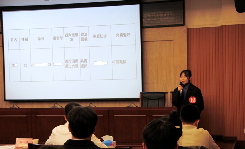 本次活动主要分为班级干部素质能力大赛决赛和班级建设大赛汇报展示两大部分。首先进行的是班级干部素质能力大赛决赛,包含“班情熟知”和“案例分析”两个环节,分别考察班级干部对班级每位成员基本情况的了解程度和班级干部在面对班级日常管理、稳定安全、疫情防控、班风学风、同学关系等问题时的思路、原则、方法和启示。