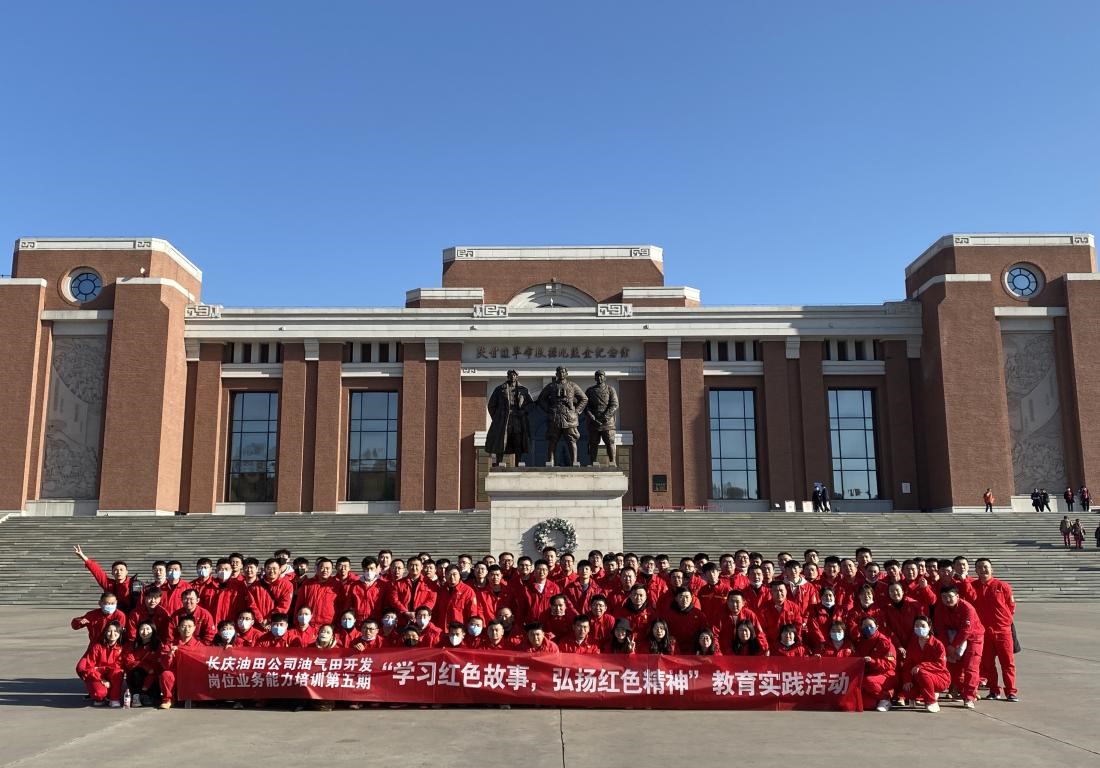 党总支的安排和组织下,长庆油田分公司油气田开发岗位业务能力培训班(第五期)全体学员,到达陕甘边革命根据地照金纪念馆参观学习,开展“学习红色故事,弘扬红色精神”主题党日活动。