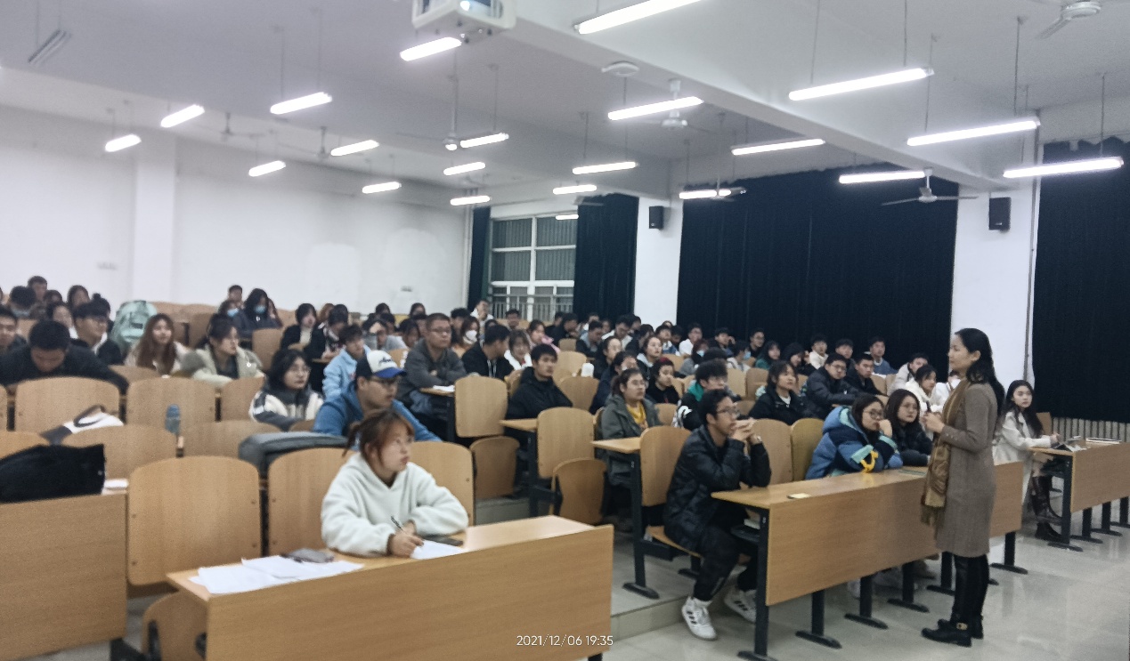 12月6日晚,学生心理成长指导中心主任肖琼在鄠邑校区博思楼121教室做了“朋辈互助·心灵守护”心理委员工作系列讲座的第三场,此次讲座的主题是“大学生常见的心理问题与帮助”,2021级全体心理委员和其他年级新任心理委员参与此次培训。