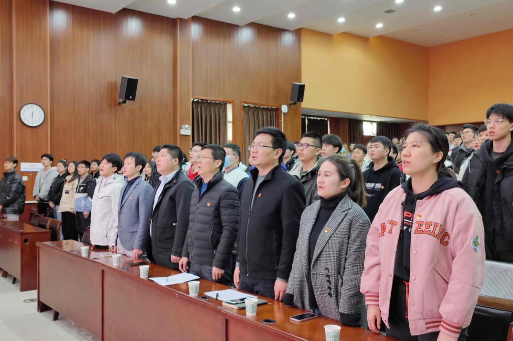 本次“政治生日”仪式在《国际歌》的歌声中拉开序幕,朱战威老师为本次政治生日会致辞,向今天参加“政治生日”的全体党员表示祝福,他希望全体党员牢记自己的政治生日,时刻警醒自己,对党忠诚,不忘入党初心、牢记入党使命。党员代表王志超、预备党员代表陈科棋,先后宣读了自己的入党志愿书并作表态发言,号召广大青年爱国爱党,不忘初心、牢记使命,为实现中华民族的伟大复兴而努力奋斗。