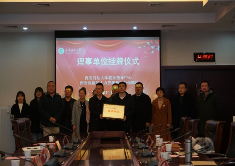 颁发西安高新区校企联盟“理事单位”并留影合念,就此次座谈会成功举办表达了感谢并预祝本次招聘会圆满举办。