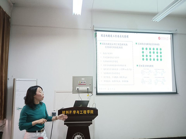 接下来,毕佳颖老师从锂离子电池的发展和突出问题入手,指出发展固态锂电池的重要意义。毕老师从固态锂电池的概述、研究背景、面临的挑战和固态锂电池的技术展望等四个方面,深入浅出地介绍了固态锂电池安全性以及科研工作者在此项工作中所做的卓越研究。在讲到固态锂电池的应用前景时,毕老师通过我国深海设备的实例出发,介绍了固态锂电池在高水压环境中的突出性能。学生们根据毕老师的精彩报告,踊跃发言提问,活动现场气氛热烈。本次系列讲座增强了学生的专业认同感和自豪感,同时激发了学生努力学习专业知识,投身国家能源发展大潮的热情。