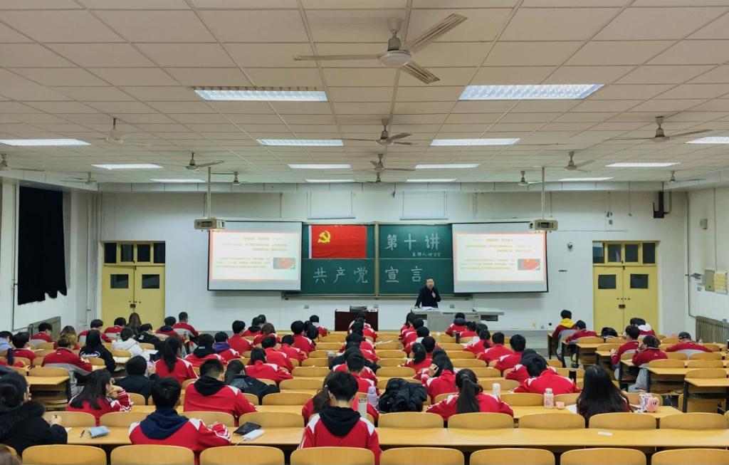 第二十一期入党积极分子培训班第十讲《共产党宣言》在鄠邑校区博览楼239教室顺利进行。本次党课由校党委组织部常务副部长种宇宏老师担任主讲,91名学生参加本次培训。