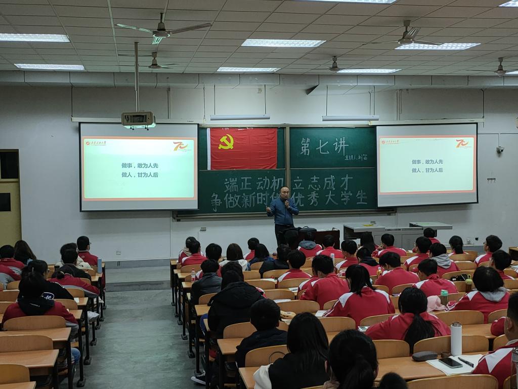 第二十一期入党积极分子培训班第七讲在鄠邑校区博览楼239教室进行。本次党课的主题为端正动机立志成才,争做新时代优秀大学生,学生工作部副部长刘笛老师担任主讲,德州扑克