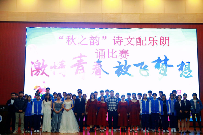 在鄠邑校区弘石报告厅举办以"激情青春,放飞梦想"为主题的"秋之韵"诗文配乐朗诵比赛。计算机德州扑克
