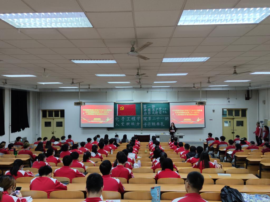 第二十一期入党积极分子培训班开班典礼暨党课第一讲在鄠邑校区A239教室举行,校党委巡察办公室主任覃彪、电子工程德州扑克