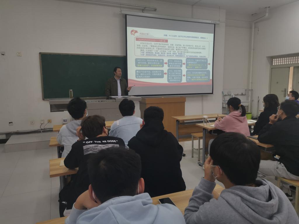 党课第二部分,马老师带领全体党员深入学习了习近平总书记在国家能源集团榆林化工有限公司、米脂银州街道高西沟村、杨家沟革命旧址、中共绥德地委旧址、绥德实验中学、绥德非物质文化遗产陈列馆、绥德张家砭镇郝家桥村等地考察调研时的重要讲话、重要指示精神。结合本次党课学习,马老师对各本科生党支部进一步深入学习习近平总书记重要讲话、规范党支部“三会一课”、加强政治理论学习做了细致的安排和严格的要求。