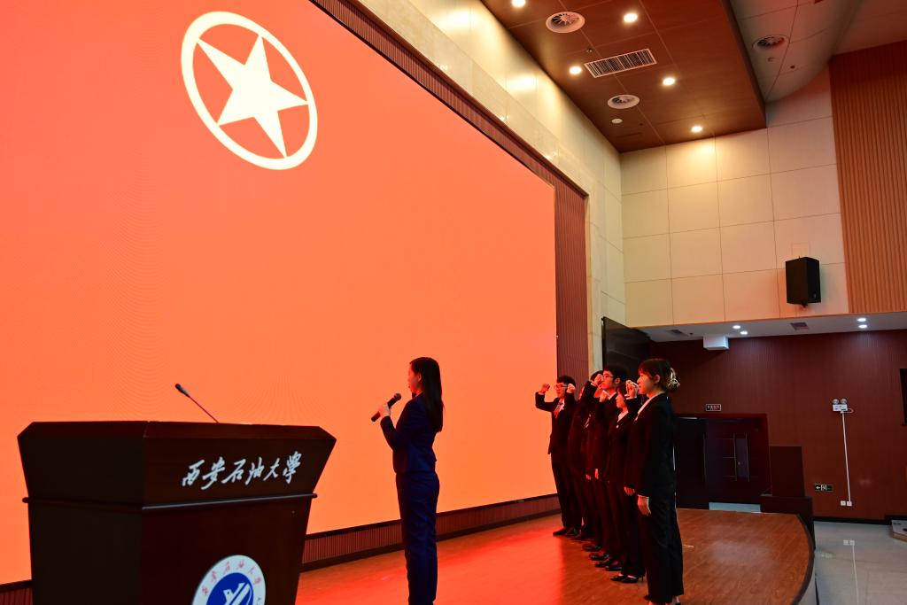 第十九届团学委员,林晔带领当选团学委员进行宣誓。
