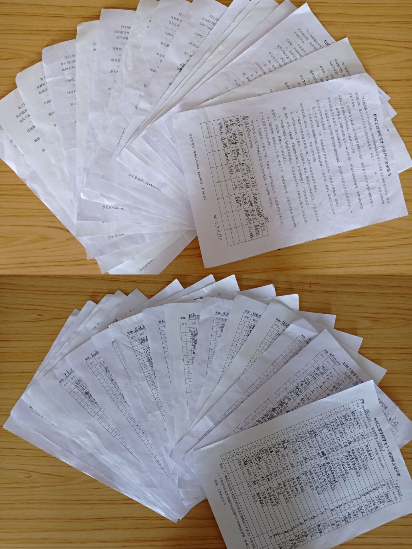 各年级均以班为单位签订了《2021年国庆假期去向登记表暨安全承诺书》。