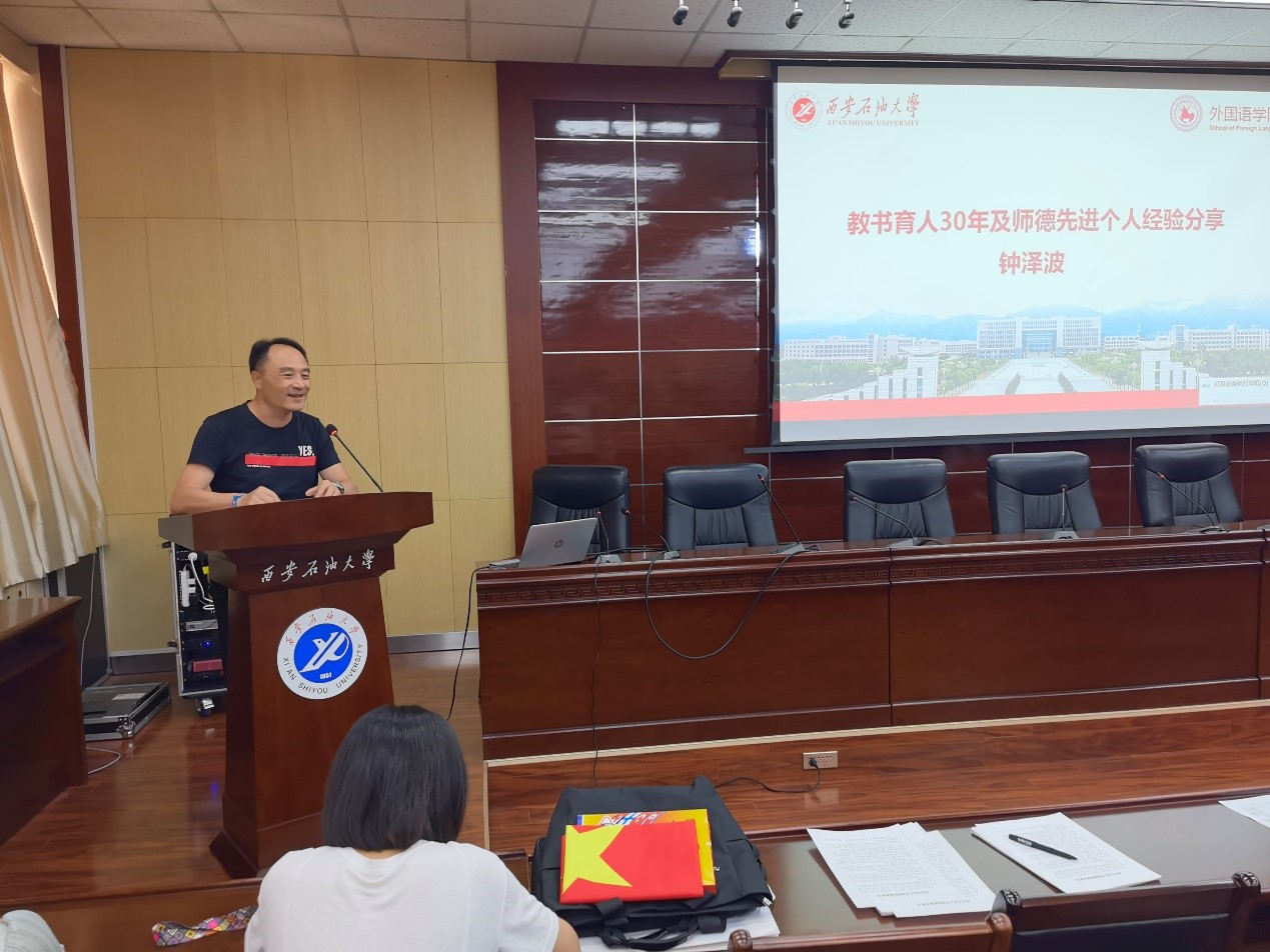 “教书育人30年”及“师德先进个人”钟泽波老师与全院教师分享30年从教的师者初心和育人使命,交流了“爱心、耐心、恒心、信心、操心”育人法,发挥了典型示范作用。