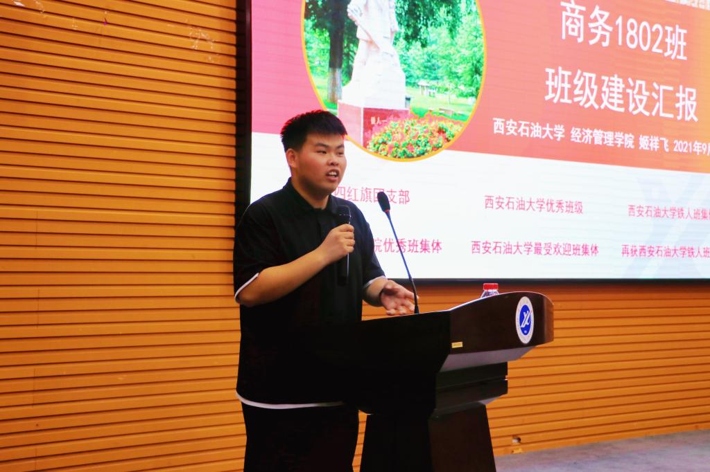 陈佳屏同学则以“青春没有失败,努力就在今朝”作为分享主题,以班级建设中的思想、组织、学风、科技文化建设为切入点,主要讲解班风班训文化、班集体荣誉、班级学习成效三方面,着重突出情况与成效、经验与做法、思考与建议的班级特色文化建设,提出在班级内部要形成“比、学、赶、帮、超”的良好学习氛围,推动班级建设持续革新。