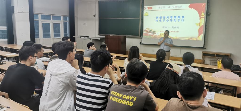 本科生党员,9月9日19:00在雁塔校区东阶301为研究生党员讲授题为《洞悟党史思想智慧 内化于心外化于行》的专题党课,本次活动有200余名学生党员参加。