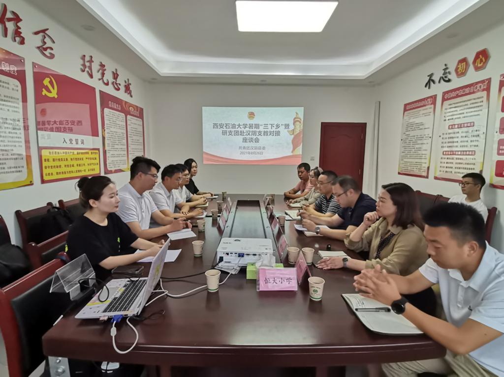 团委赴安康市汉阴县对接研究生支教团工作。上午11时,汉阴县团县委组织相关单位在汉阴宾馆北三楼会议室召开座谈会,汉阴县团县委书记武进朝、少先队总辅导员吴媛媛、支教团服务德州扑克