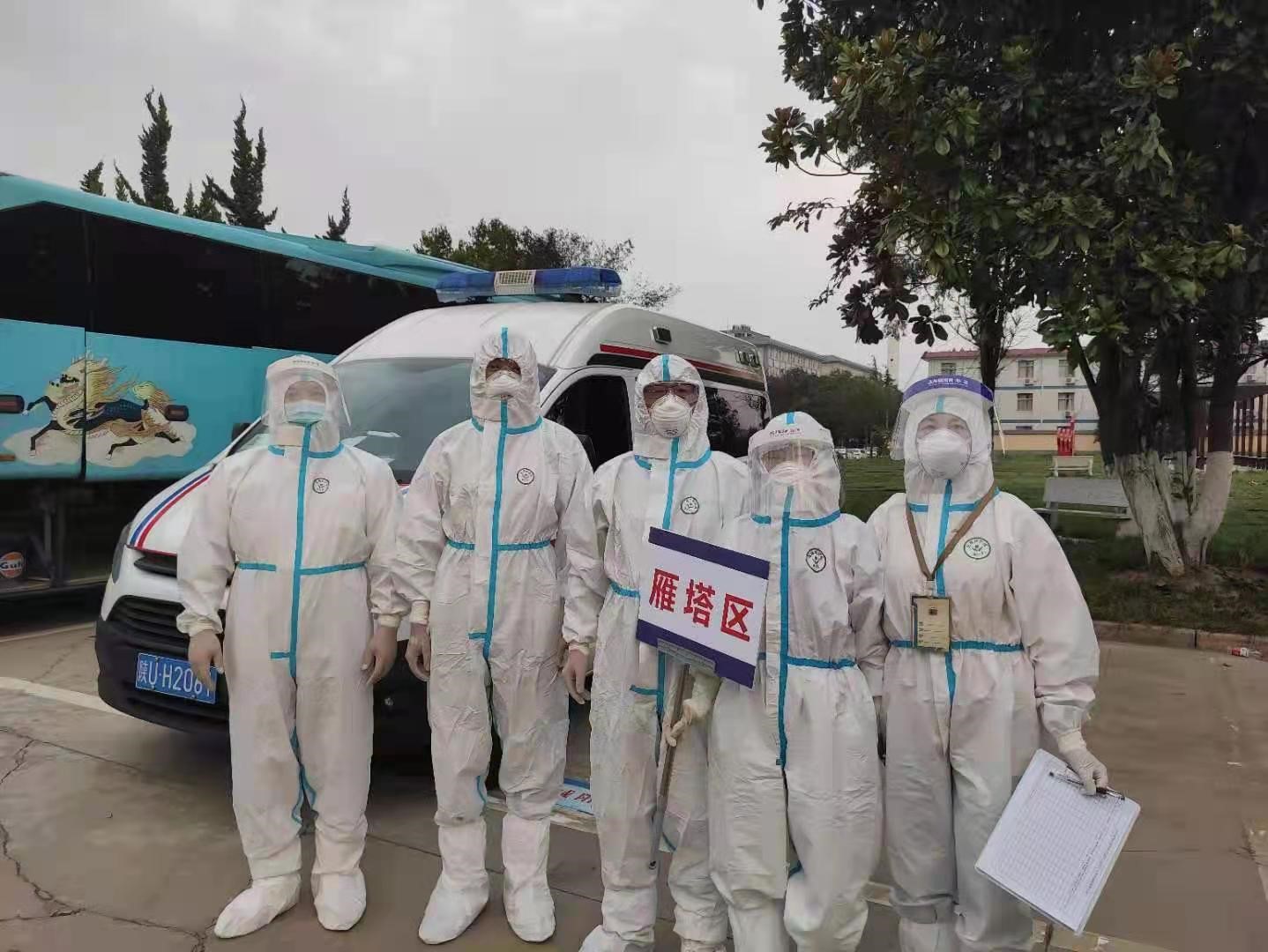除承担本次核酸检测采样工作任务外,应上级卫生部门征调,校医院还派出了两名职工分别赴西安火车站、西安南站途径中高风险区返陕人员的运转等疫情防控工作及明德校区学生居家隔离点的转送和日常防控工作。