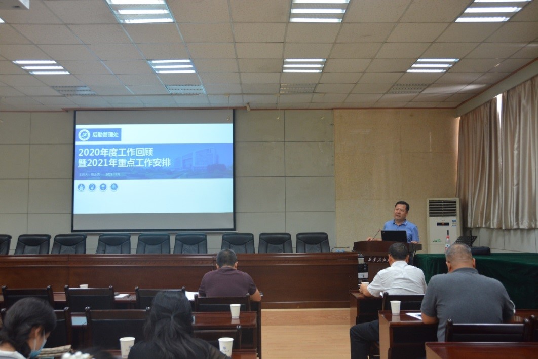 今年工作要点、主要工作任务分解表安排部署给后勤的工作和要求,把上半年的工作的具体落实和完成情况进行了总结、分析。同时,又根据当前工作实际,把暑假及下半年工作进行了安排,重点要落实、实施好各项新学期开学准备工作;新建学生公寓宿舍的设施安装配置、教室功能改造等维修改造,以及校园整治工程,同时要严密做好暑期疫情常态化防控,尤其是各校区室内重点区域消杀和通风,加强教学、科研及学生公寓等门禁管理;做好暑假留校学生的生活及学习保障;落实好暑期室内外重点区域(尤其是鄠邑校区)的防汛抗汛工作;加强暑期工作人员防暑降温、劳动保护及规范操作管理等。他还要求,下半学期在完成好疫情防控常态化下各项保障和服务工作的同时,要重点做好70周年校庆服务保障、落实好文明校园创建等工作。