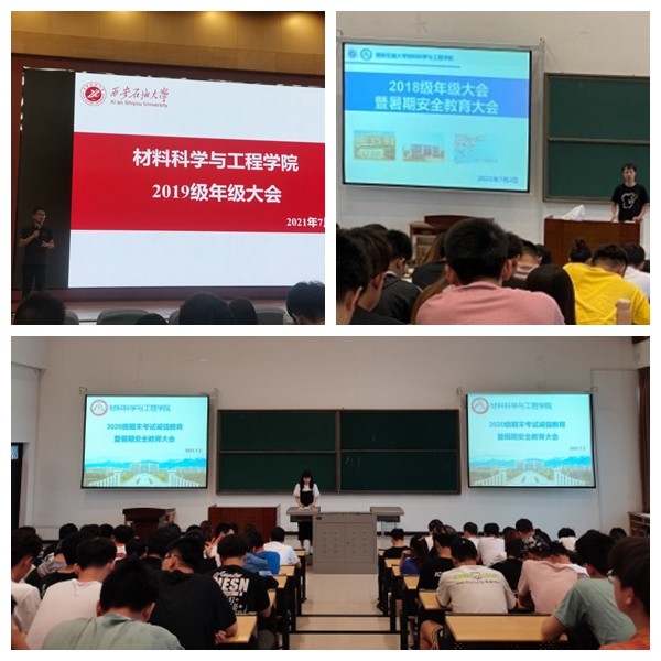 各年级召开了考试诚信教育暨暑期安全教育大会,会议由各年级辅导员老师主持。