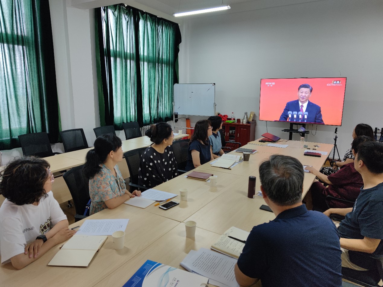 组织院党委理论学习中心组成员在雁塔校区1号教学楼727会议室,集体观看“七一勋章”颁授仪式。