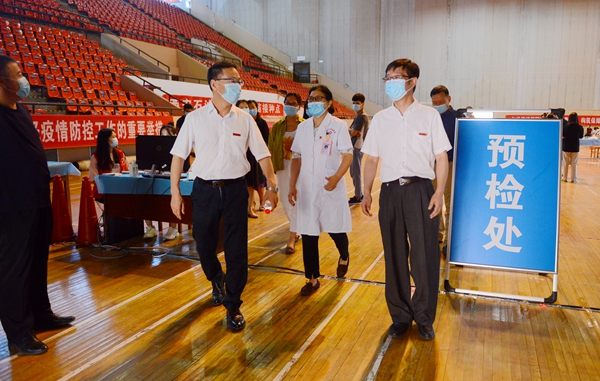 雷西合副书记、苏文甫副校长一行现场察看了疫苗接种点运行情况,并与现场工作人员亲切交谈,对他们一直无私奉献在一线、不辞辛劳地坚守在一线的工作作风表示诚挚敬意和衷心感谢。