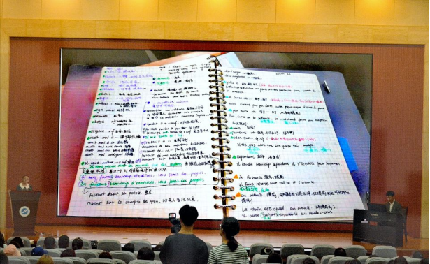 伴随着王嘉伟同学优雅动听的钢琴曲,吕芳老师向同学们打开了通向法语学习之路的大门,将这一路的感想与收获娓娓道来。随后同学们大秀特秀法语学习:讲节日,说语法;谈心得,聊收获。伴随着几首美妙的歌曲,法语学习展演犹如一出音乐剧展现在观众们眼前。展演的最后,几位同学声情并茂地讲述了中法文化的交融互鉴篇章,给予在座的观众们一种身临其境的体验,让同学们对法国文化的认知与对法语学习的了解有了完全不同的体会,同时也使法语教学立体化,多样化。