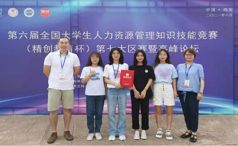代表队荣获第六届全国大学生人力资源管理知识技能竞赛(精创教育杯)第七大区赛综合奖一等奖、第六届全国大学生人力资源管理知识技能竞赛(精创教育杯)第七大区赛理论知识竞赛特等奖和第六届全国大学生人力资源管理知识技能竞赛(精创教育杯)第七大区赛软件模拟实操竞赛二等奖。