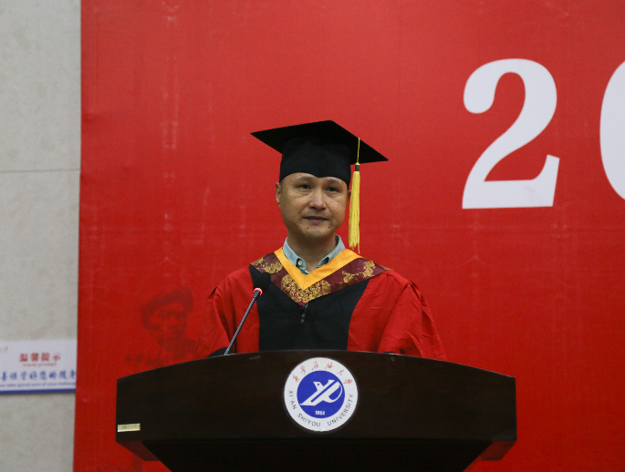 教师代表黄风林教授结合自身的经历和实践经验,嘱托同学们要时刻要把家国情怀镌刻在心间,大力弘扬在家尽孝、在岗尽责;要有儒家入世的思想,大力推进实践和创新。他指出,同学们不能妄自菲薄,要树立自信,坚持自强努力成为“为人诚实,做事踏实,生活朴实,基础扎实,并且富有创新精神”的实用型人才。