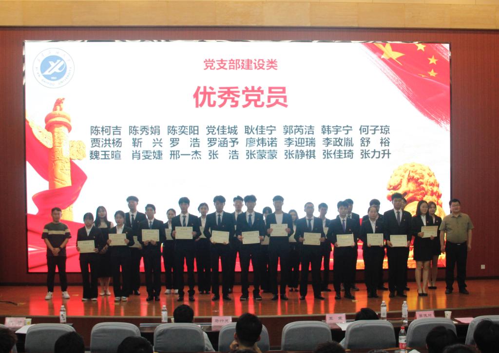 马行天书记为先进党支部颁奖。王莹副书记为优秀党支部书记颁奖。各年级辅导员老师共同为优秀党员颁奖。