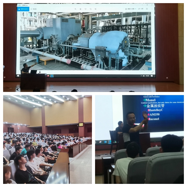 过程装备与控制工程专业2004届毕业生、福斯流体控制(苏州)有限公司上海分公司西北区域销售经理、高级工程师苗继通校友。延长石油能源化工有限公司烯烃聚合中心副总经理柏旭刚校友、2020级辅导员马舒宇及400余名学生参会。论坛由化工机械系副主任王治国副教授主持。