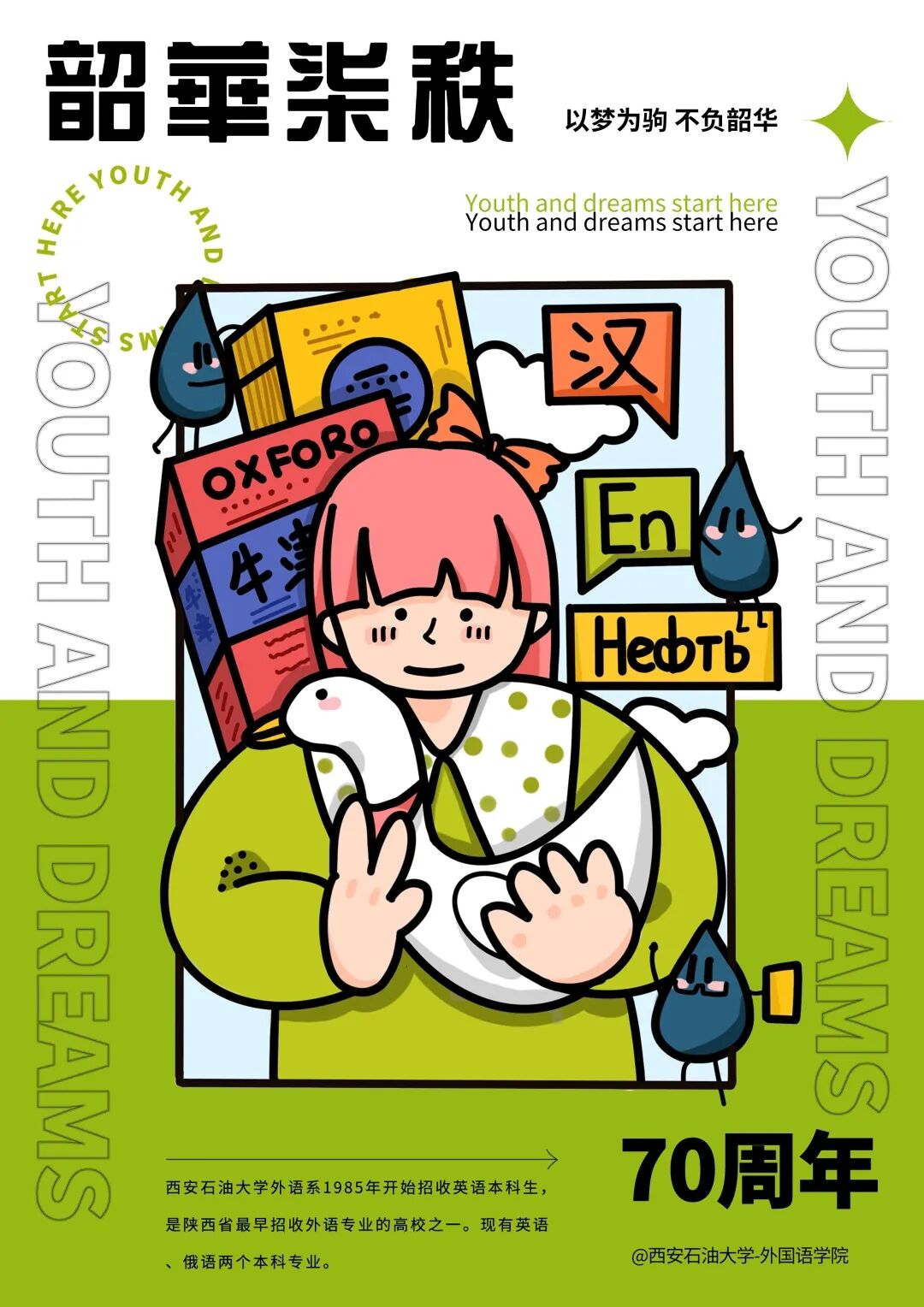 的校庆主题,也表达了她勉励莘莘学子珍惜美好时光的愿望。