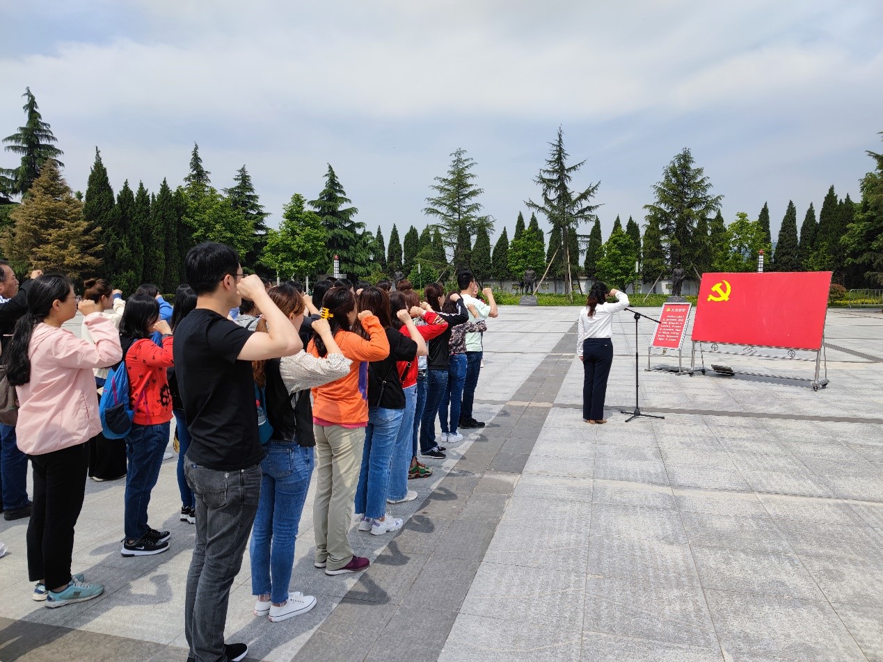 党委书记田虹霞带领全体党员在纪念碑广场举行了重温入党誓词仪式。