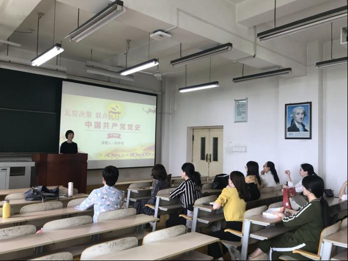 最后,支部副书记毕莹老师及支部宣传委员陈君均老师开启了本支部的特别活动——我来讲党史。毕莹老师向大家讲述了党史记录中的第一位女党员缪伯英的故事。险恶的斗争环境,食无定时,居无定所且长期清贫而不稳定的生活并未让这位女党员低头,她将自己的青春乃至生命奉献给了自己坚定的信仰。陈君均老师向大家讲述了瓦窑堡会议在中国革命中的重要地位。瓦窑堡会议总结了两次国内革命战争的基本经验,批评了“左”倾关门主义,解决了遵义会议没有来得及解决的党的政治策略问题,制定了抗日民族统一战线的策略路线,有力地推动了全国抗日民主运动的发展。
