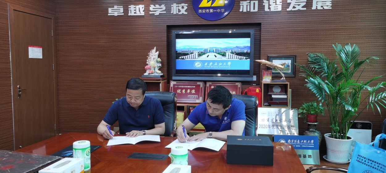 座谈会上,招生工作组与西安市第一中学双方代表签署了优秀生源基地协议并授牌。
