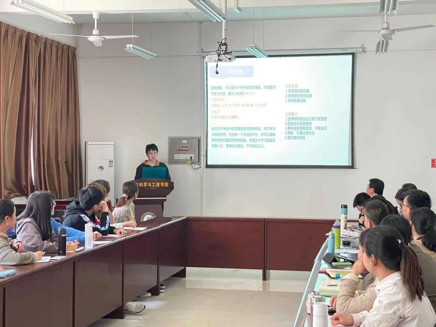 报考选择、专业选择、时间规划等复习过程中遇到的各种困难、问题与困惑等积极提问,新材料系参会教师及受邀嘉宾结合自身经历、理解及心得,有针对性地给同学们提出了许多有益的考研指导和中肯的建议,达到了预期效果。会场气氛十分热烈,考研氛围非常浓厚。新材料系全体教师纷纷表示将全力指导学生考研,切实做好每位学生的成才服务工作。目前该班25名同学全部确立了考研目标并全身心投入了备考。