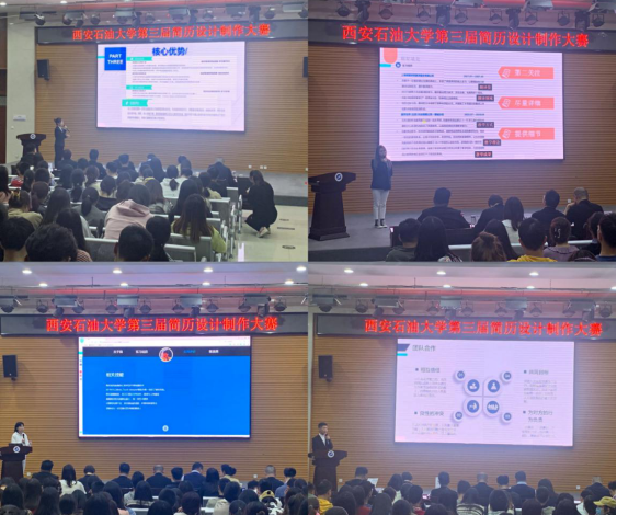 承办,自开展以来,各院(系)精心组织、学生踊跃报名,共收到参赛简历800余份,大赛组委会邀请专家对各院(系)提交的参赛简历进行初赛评审,评选出19份优秀参赛简历晋级决赛,决赛分为陈述环节和答辩环节,陈述环节由参赛学生以PPT讲述的方式,向评委阐述自己简历设计的思路和优势,答辩环节由评委对参赛学生进行提问,现场点评并打分。