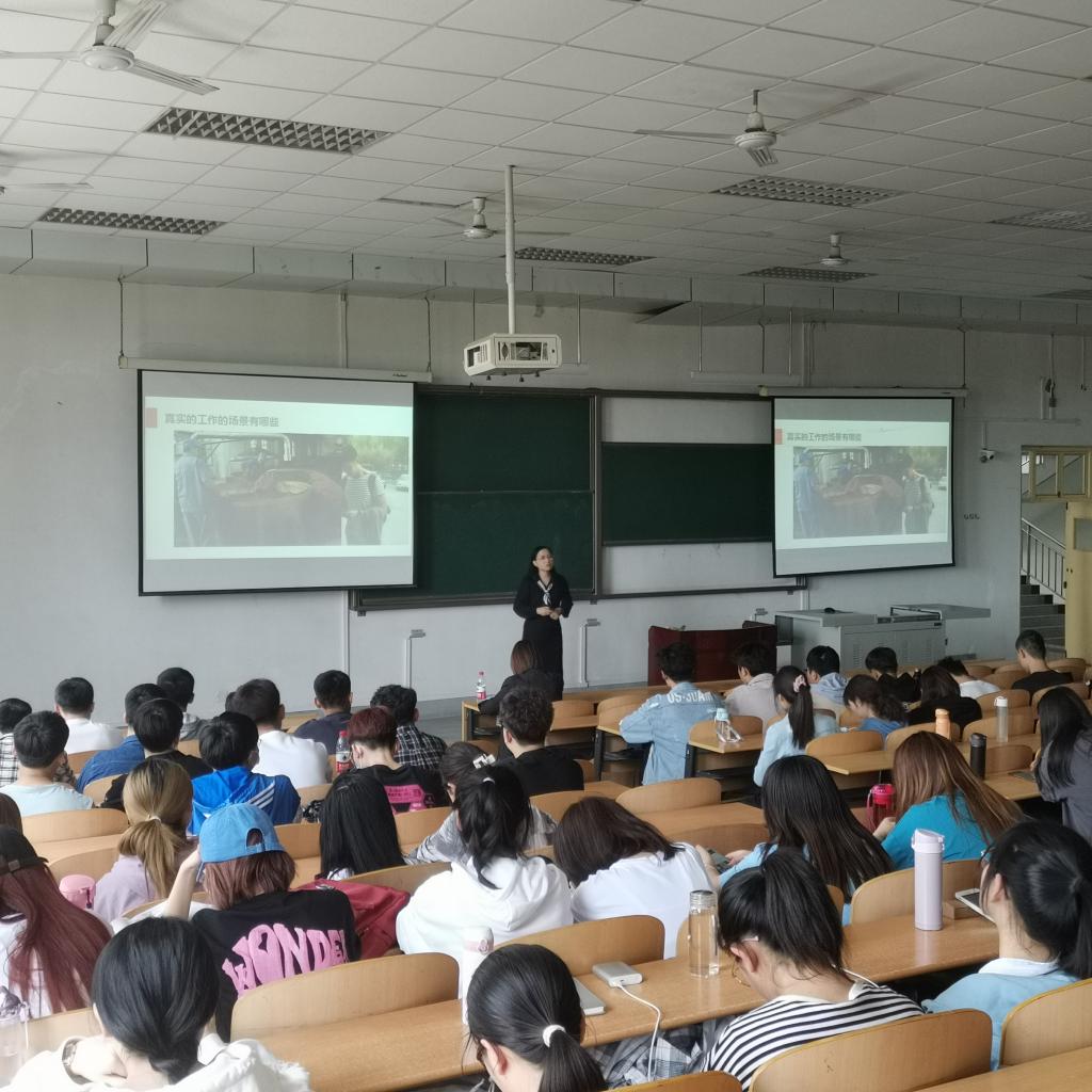 郭老师以“大学生职场攻略”为主题,主要从企业招聘的角度给学生进行就业讲解,让学生更加了解企业需求的人才类型。郭老师着重从以下三个方面进行了详细了的讲解:在职业选择方面,郭老师以图片形式向学生展示大学生就业现状,激发了学生的兴趣,并通过真实生动的范例让学生感受到了就业的现实问题,强调学生选择职业要慎重;在企业选择方面,郭老师主要讲解了企业对个人职业发展的影响,以及学生择业时判断企业的标准;在职场选择方面,郭老师详细讲解了如何进行就业简历、面试的准备,以及职场的生存法则。