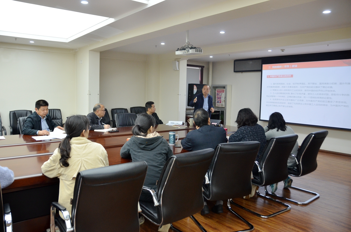 党总支委员、院长谈建勤讲授党课,全体职工参加。党总支书记耿岭主持党日活动。
