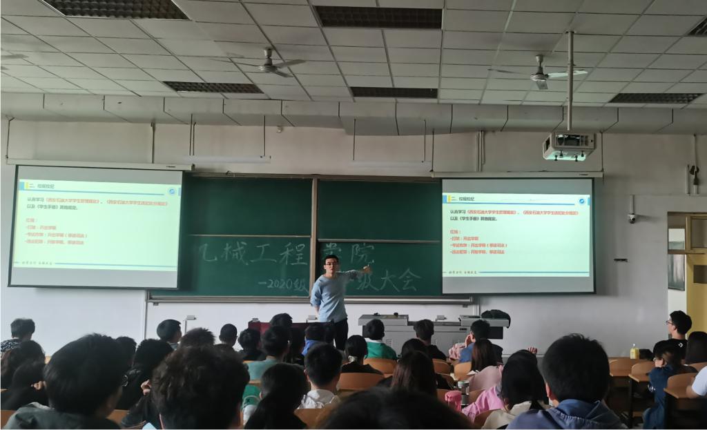 在各年级大会上,各位辅导员针对本年级具体工作进行安排。在2017级大会上,马武军老师对在外实习、参加复试的学生进行重点安全教育、叮嘱同学们要在保证安全的前提下保证下充分参与实践,会后一一联系未就业的学生,做好就业信息传达和就业指导,推动该部分学生顺利就业。在2018级大会上,张靓老师重点强调了大三的考研和求职准备,她要求所有学生要明晰目标、脚踏实地、分解下沉任务,并根据实际情况及时调整求职和备考进度,并在会上再次做就业和考研动员。2019级辅导员邱迪老师通过对各专业未来发展前景的解析和展望,分专业进行了详细指导,他希望同学们在稳固自己成绩的同时,多参加课外科技与实践活动,做到纵向和横向全面发展。在2020级大会上,马舒宇老师重点强调了学风建设,分析了挂科率高的科目情况及其原因,并要求了四级备考的事项,同时还强调了班级、宿舍学习氛围的建设。