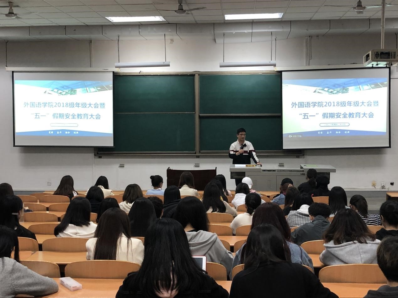 学生工作教育安排部署,4月26日、28日,辅导员陶李、陈浩在鄠邑校区A239、B212分别召开各年级大会暨“五一”假期安全教育大会。