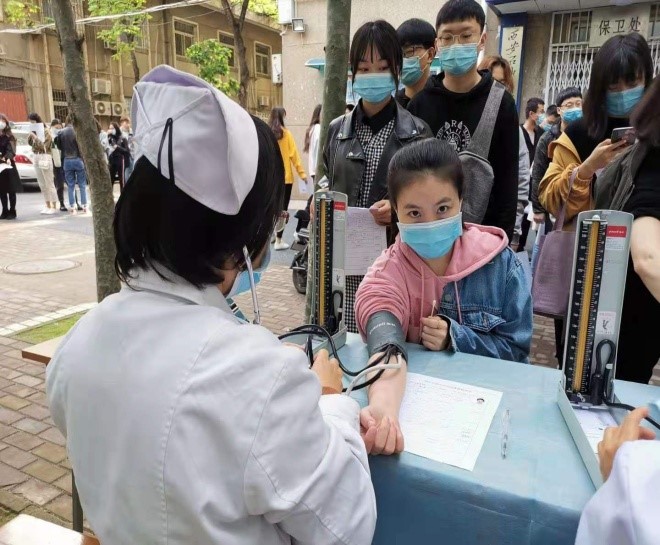 本科生和研究生毕业生体检工作,为确保毕业生体检工作的顺利开展,苏文甫副校长及校医院领导对体检工作非常重视,亲自参与并积极指导,制定了相应的体检流程、设置了合理的岗位分工,并针对目前新冠疫情情况,制定了详细的体检疫情防控应急预案,按要求落实好疫情防控。校医院在保证正常的接诊的同时,调动全体职工的积极性,加班加点,顺利的完成了全校近5000名本科生和研究生毕业生的体检工作。