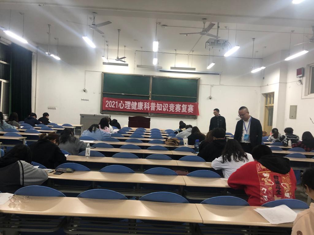 2021年心理健康科普知识竞赛复赛同时在鄠邑校区B119和雁塔校区学生心理成长指导中心举行,两边分别由经济管理德州扑克