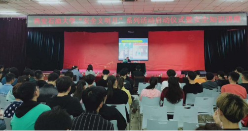 启动仪式结束后,保卫处夏青老师为同学们进行了安全知识讲座。夏青老师从防范盗窃、电信诈骗、交通安全、消防安全等四个方面,通过详实的案例进行剖析解读,提醒同学们在生活中一定要提高防范意识、学会用正确的方式保护自身生命和财产安全。