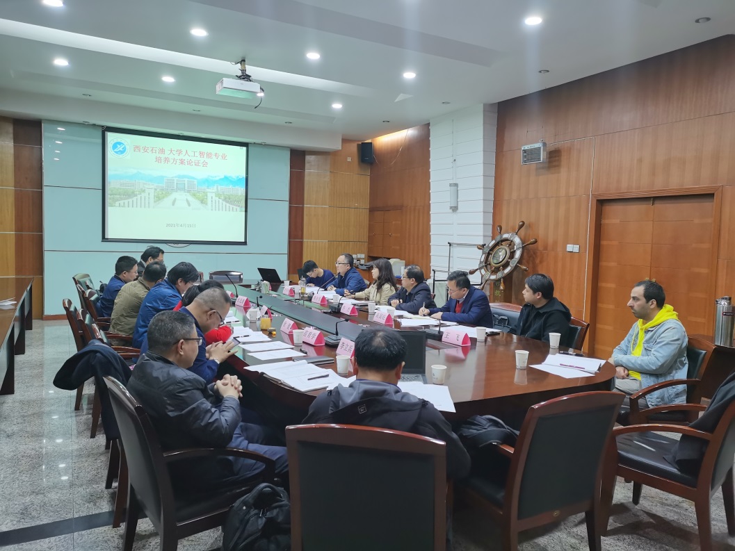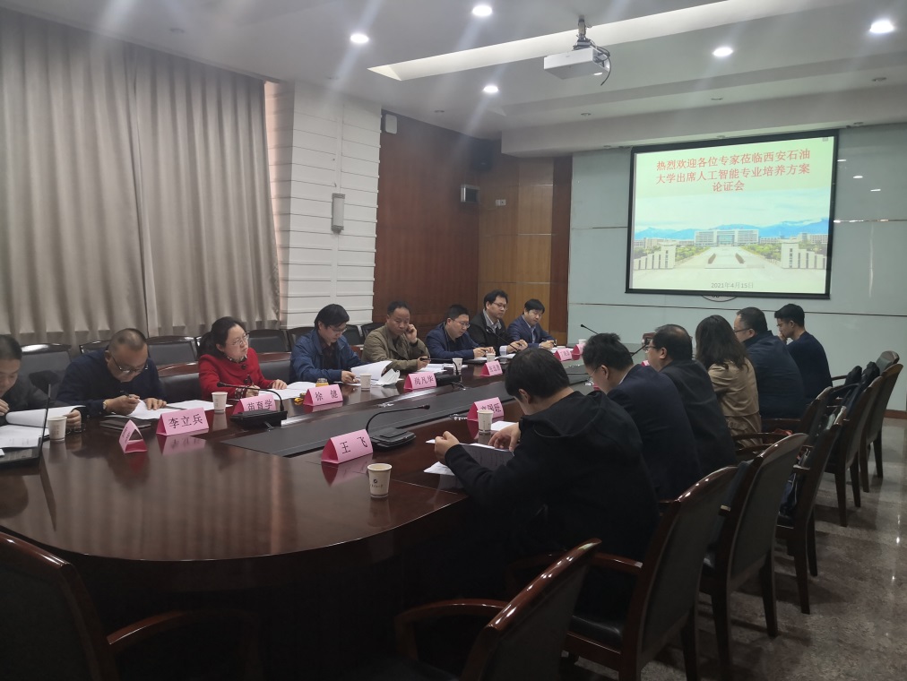 的历史沿革、学科专业发展、人才培养与科学研究向各位专家进行了简短介绍,并就人工智能专业的定位与其他专业的协同发展进行了阐述。接下来,人工智能专业负责人景明利就培养目标、课程体系、培养特色向专家进行了介绍。与会专家针对专业培养方案的内容展开了全面、深入论证,专家们认为培养方案定位明确、课程体系完整,符合应用型人才培养要求。同时,专家们在基础课程设置、学生实践能力培养、项目案例教学模式、企业参与方式、学生就业方向等方面给出了中肯的建议。
