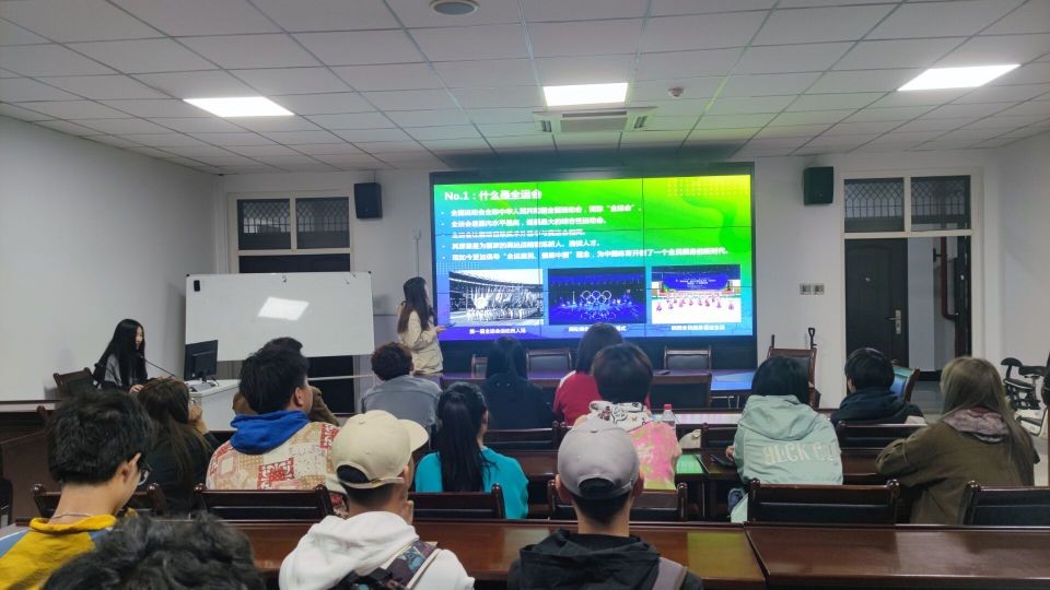 邀请2020级十四运志愿者李梦迪,在鄠邑校区教学C区112室做“全运知识”主题报告,为参会学生普及了全运会相关知识,并详细对十四运的场馆建设、项目设置、吉祥物及会徽设计等情况进行了介绍。