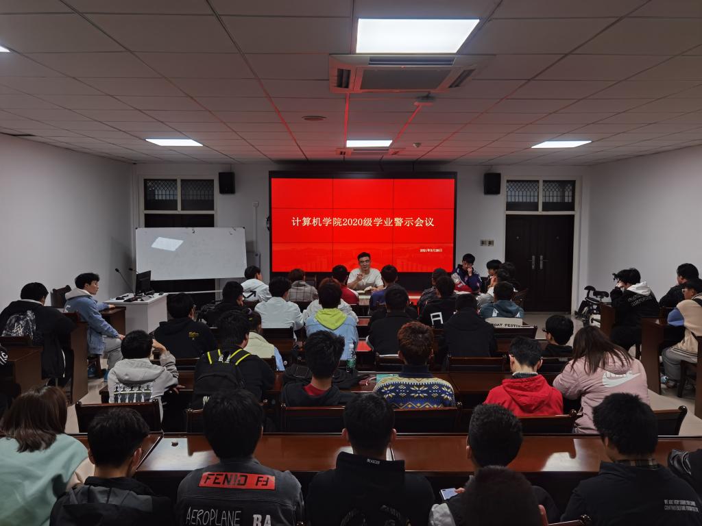 在鄠邑校区教学C区1楼实验楼112室召开2020级学业警示会议,辅导员刘亭普主持会议,全体班长、学习委员和受学业警示学生参加会议。
