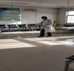 工作人员做好疫苗接种场地消杀准备工作 |