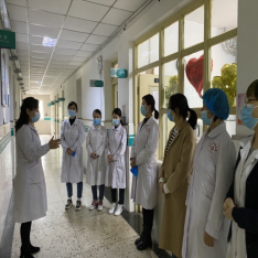 3月25日护理部伍晓燕主任和刘婷医师给医务人员进行新冠疫苗接种医疗保障急救知识培训和演练 |