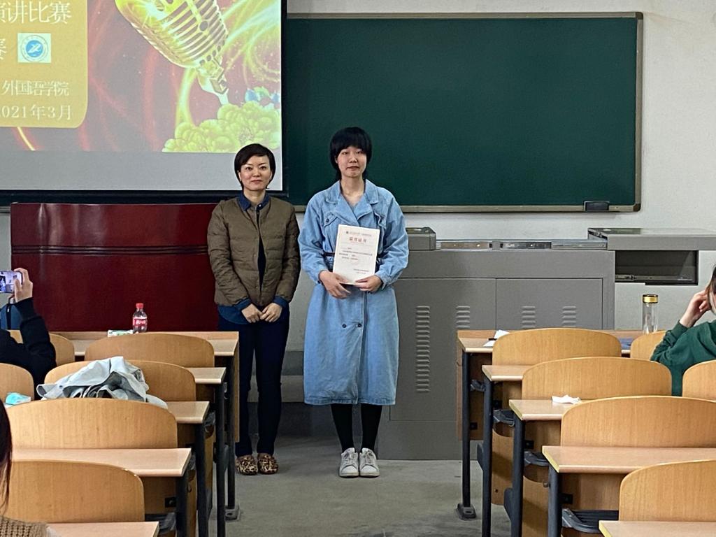 经过激烈角逐以及评委老师们认真商讨后,最终来自英语1802班的张初萌荣获一等奖,也同时获得代表德州扑克