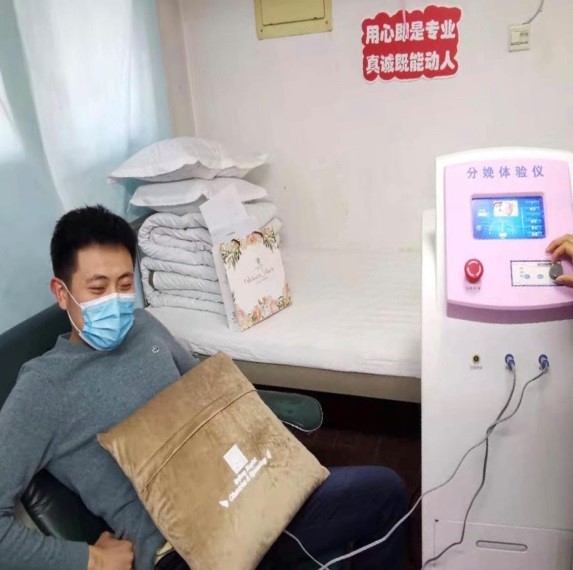 活动现场气氛活跃,孕产妇与专家进行互动提问和现场交流。现场邀请两位男士参加了分娩疼痛体验,通过体验分娩疼痛仪模拟女性分娩时1-10级不同级别的疼痛程度,旨在提升男士、家庭及全社会对女性尤其是孕产妇的理解和关爱,此次活动得到了教职工的欢迎。