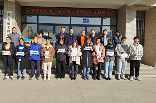 2021年1月12日上午10:30,西安维度机电设备有限公司防疫物资捐赠仪式在鄠邑校区石工地科楼南广场举行,石油工程德州扑克
